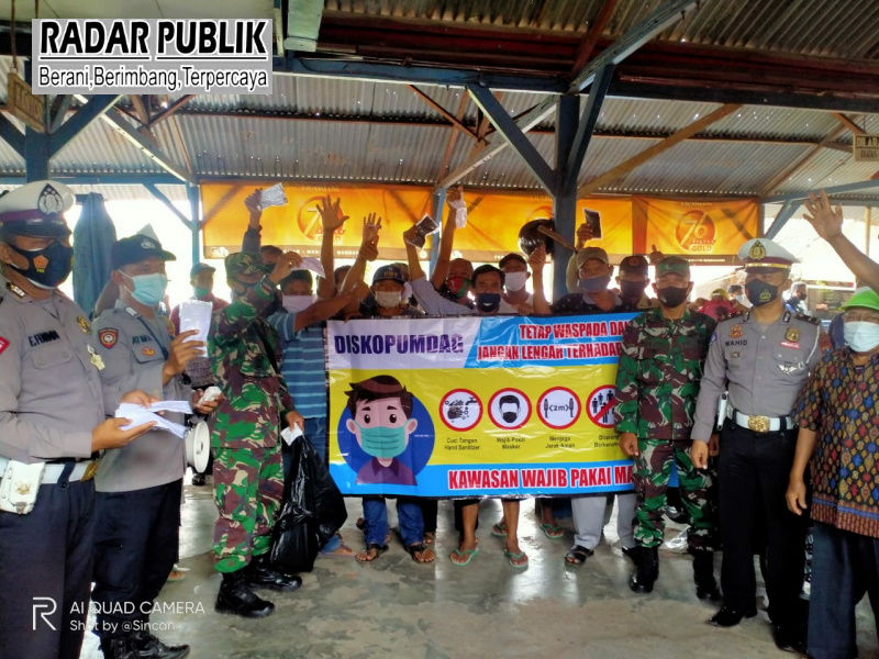 Banyuwangi : radarpublik.net – Guna memutus mata rantai covid-19 melalui Instruksi Presiden Nomor 6 Tahun 2020, Perda Gubernur Jatim no. 2 tahun 2020,Pergub nomor 53 tahun 2020, STR Kapolresta Banyuwangi Nomor : STR/403/IX/OPS.2./2020 Tanggal 15 September 2020 Tentang Pelaksanaan Operasi Yustisi, Kepala Unit lalulintas (Kanit Lantas) Polsek Genteng Operasi masker dan membagikan masker kepada pedagang Sepeda Motor Bekas serta Pedagang Hewan di desa Genteng wetan kecamatan genteng, terpantau di lokasi tampak perwakilan Kodim 0825/BWI diwakili Koramil Genteng Kapten Inf.Sutiyono. Sabtu (16/01/2021).