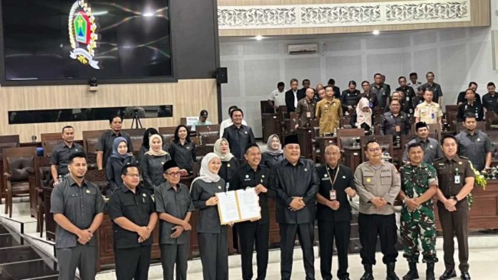 Kota Malang- Radarpublik. Rapat Paripurna DPRD Kota Malang dengan agenda Penyampaian Hasil Pembahasan dan Pengambilan Keputusan DPRD terhadap Laporan Keterangan Pertanggungjawaban (LKPj) Wali Kota Malang anggaran 2024 digelar di Ruang Rapat Paripurna DPRD Kota Malang, Rabu (16/4/2025).Wali Kota Malang bersama Ketua DPRD Kota Malang foto bersama usai penandatanganan berita acara persetujuan LKPj Wali Kota Malang 2024